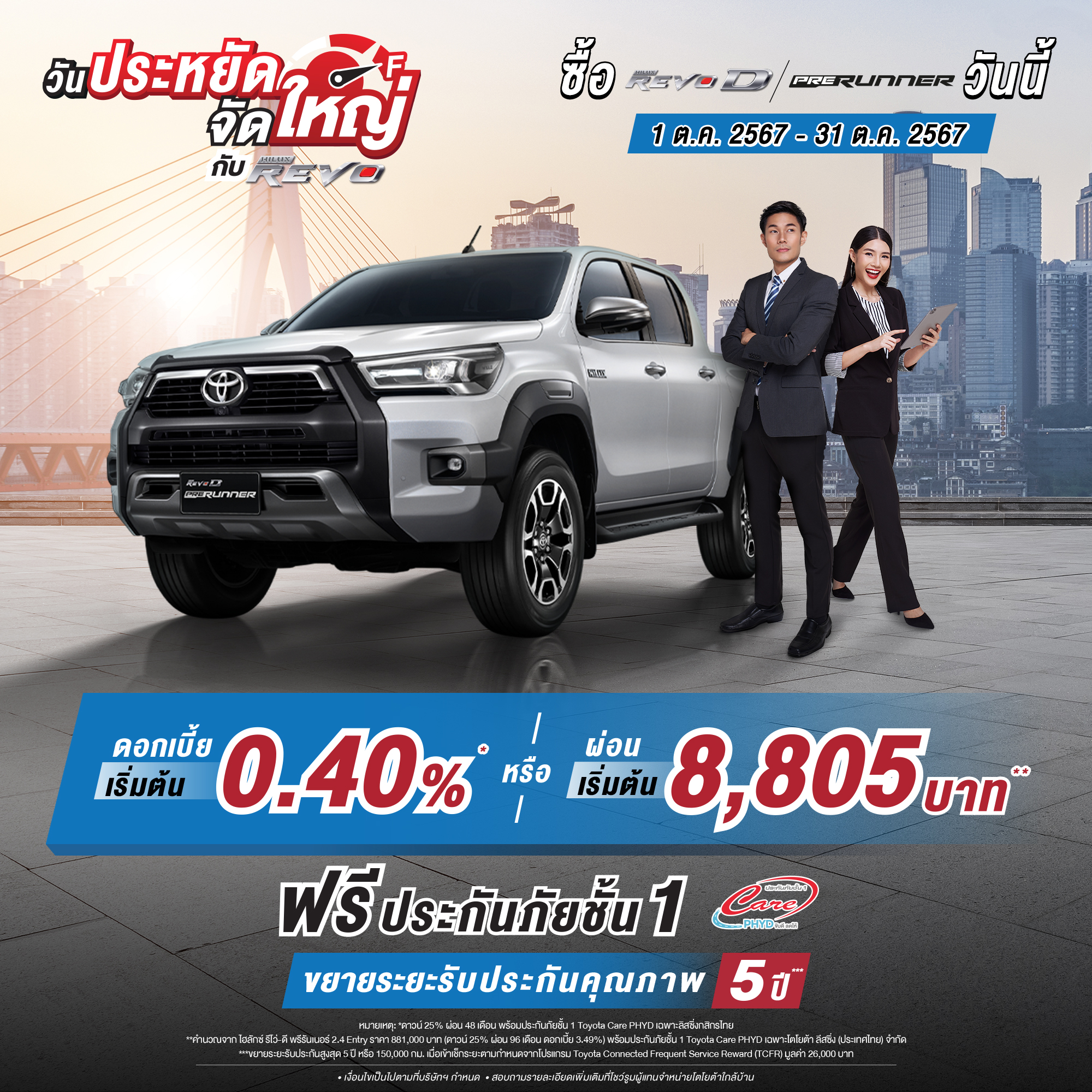 ซื้อไฮลักซ์ รีโว่-ดี พรีรันเนอร์ ตั้งแต่วันที่ 1 ตุลาคม 2567 - 31 ตุลาคม 2567